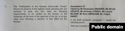 Меня же удивил 8-й параграф резолюции, утверждающий, что «”Участниками Русских демократических сил” могут быть лица высочайших моральных качеств, находящиеся в настоящее время в изгнании и отвечающие следующим требованиям, которые должны быть проверены Бюро Ассамблеи…» и далее следуют 15 необходимых условий: от естественного «разделять ценности Совета Европы» до смешного «подписать Берлинскую декларацию Российских демократических сил».