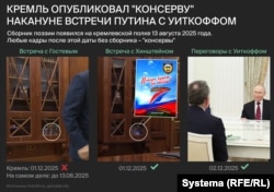 Махинации пресс-службы Путина снова выдала книжка в шкафу у президента. Как ранее писала "Система", сборник поэзии бойцов ВДВ появился в книжном шкафу в рабочем кабинете Путина не позднее 13 августа 2025 года.