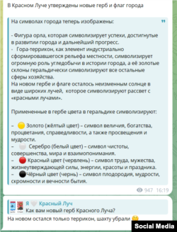 Россия продолжает эксплуатировать миф о Донбассе как о шахтерском крае, при этом в одном из пабликов обратили внимание на новый герб города Хрустальный (бывший Красный Луч), который "утвердили" оккупационные власти. На новом гербе, в отличие от старого, нет шахты, потому что она была закрыта.